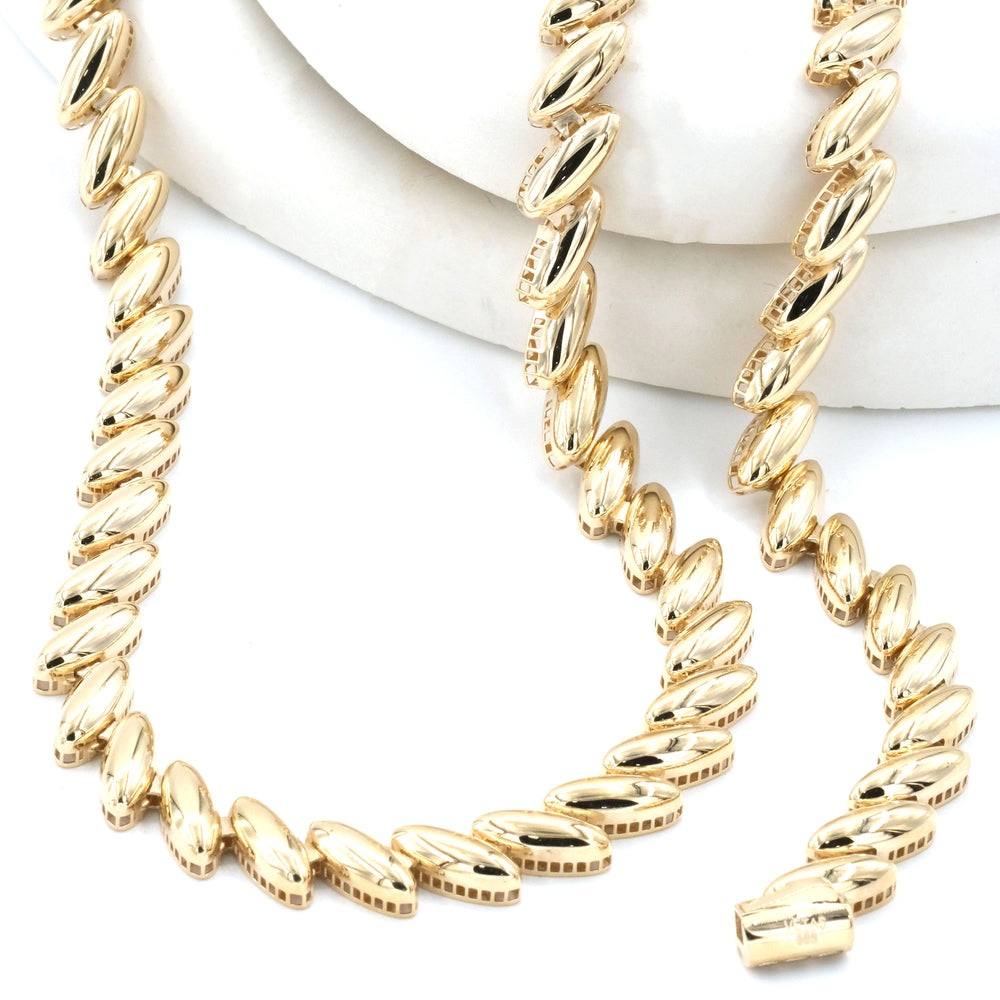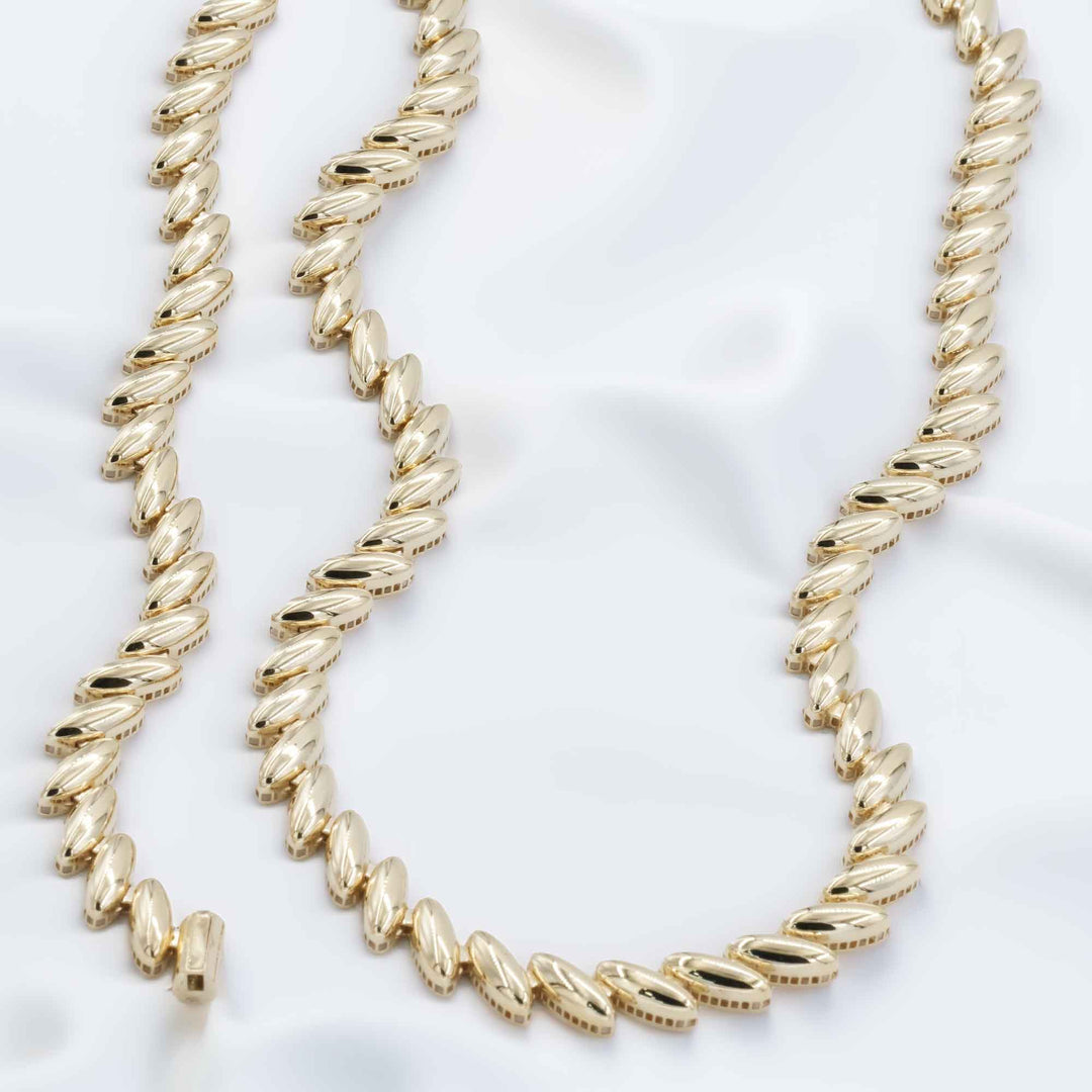 İtalyan gerdanlık ve bilekliğin örgü tarzları birkaç farklı modelde hazırlanabilir. Altın nişan seti seçeneklerinin başında gelen İtalyan model düğün takımını 14 ve 22 ayar olarak tercih etmek mümkündür.
