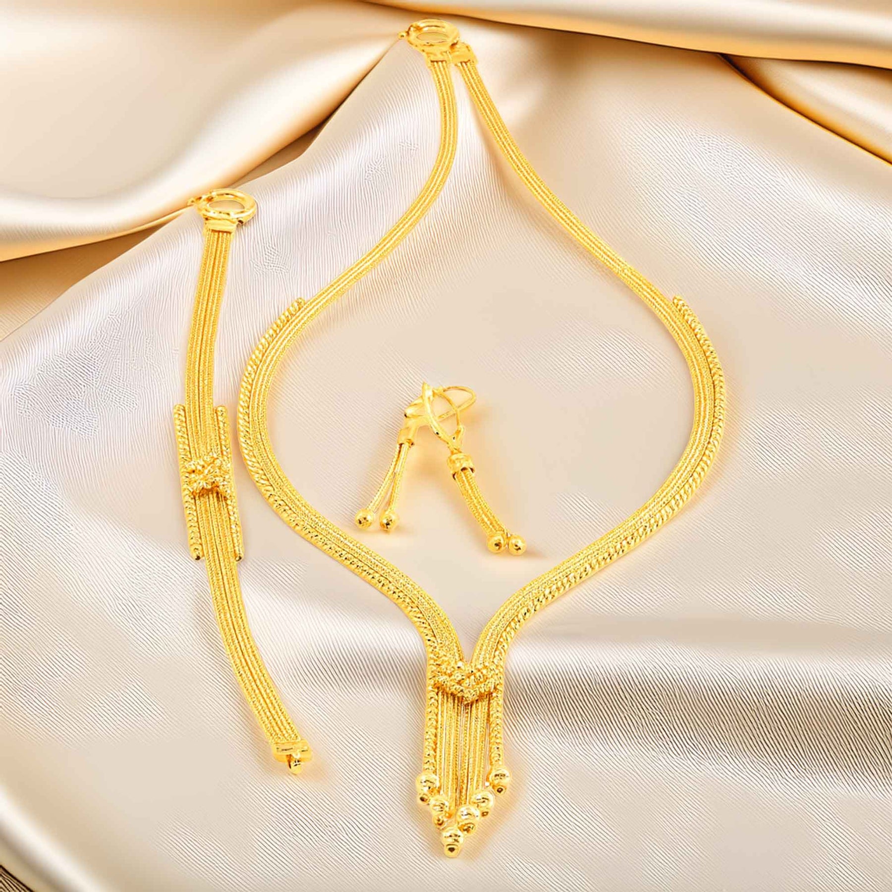 14 Ayar Altın Düğün Seti Takım 3'lü Set – Gerdanlık, Bileklik, Küpe - Güzelse Çizgidendir