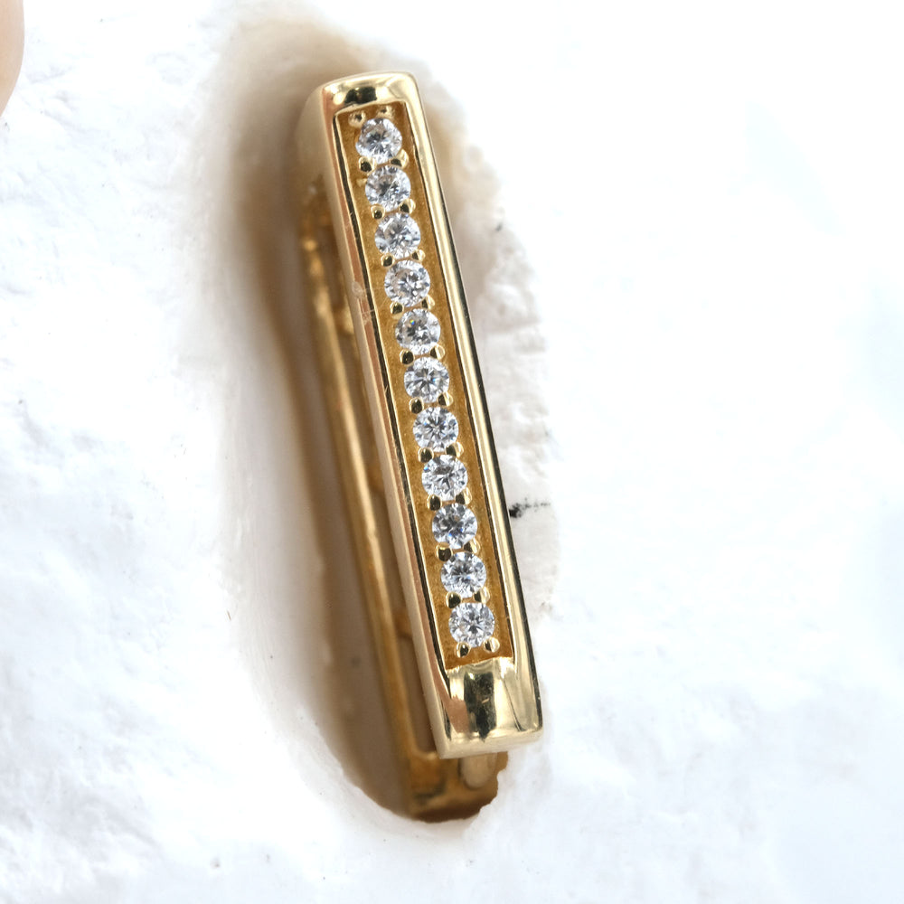 Pırlanta baget küpe, dikdörtgen şeklindeki pırlantaların sıralı bir biçimde yerleştirildiği küpe modelidir. Bu özgün tasarım, gündelik kullanımda sofistike bir dokunuş sağlarken, özel anlarda da şıklığınızı tamamlayan bir aksesuar haline gelir.